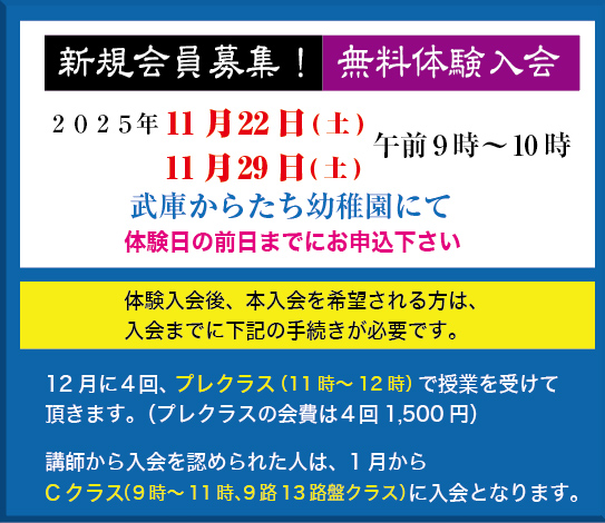 新規会員を募集致します。無料体験入会を希望される方は、下記ボタンより申し込んでください。