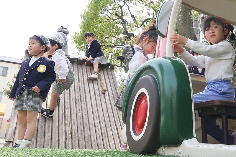 お天気の良いときは、園庭で元気いっぱい遊びます。